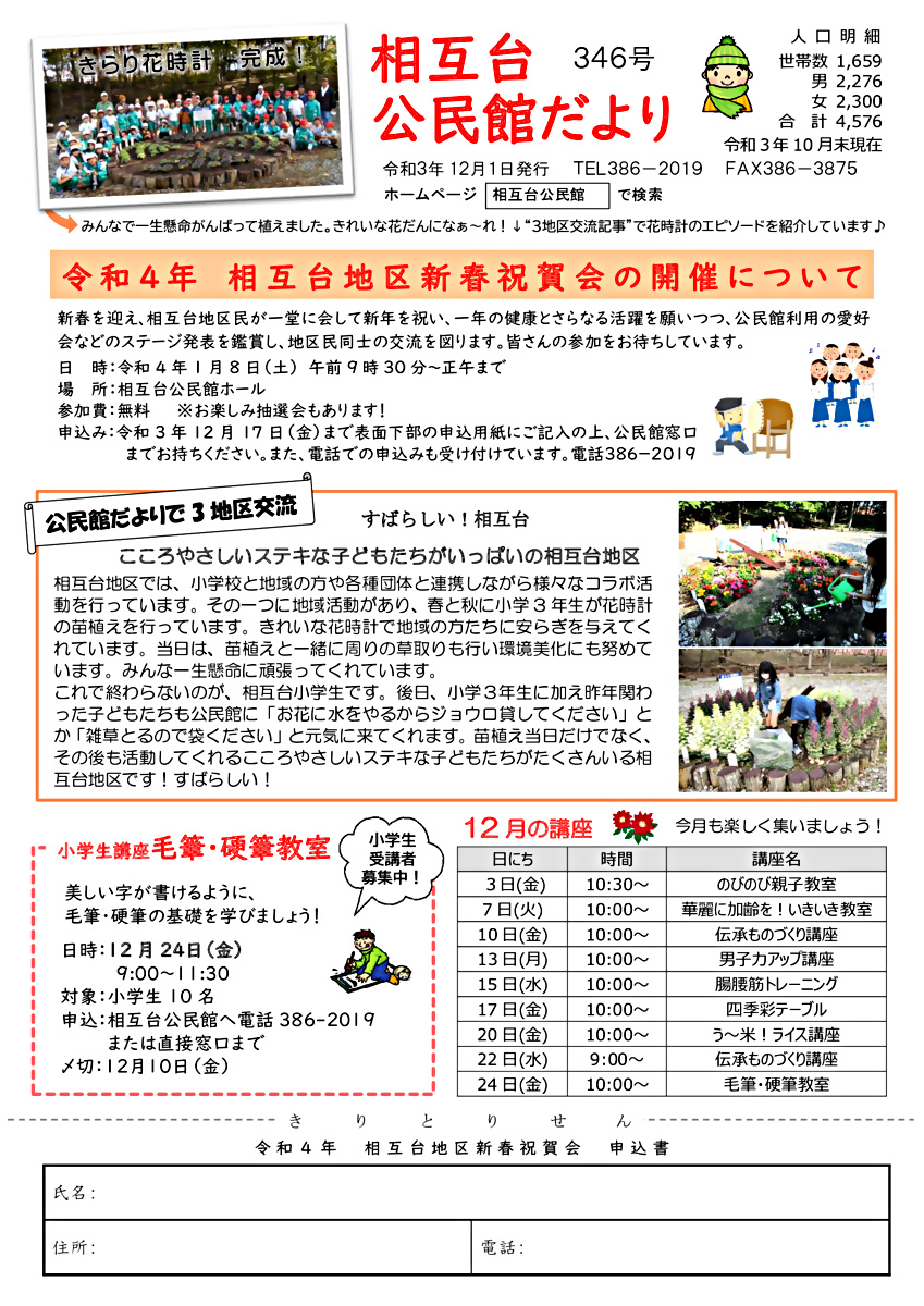 ★毎月1日・15日・末日にその月の公民館だよりを掲載しています。★内容に関するお問い合わせは各公民館までお願いします。