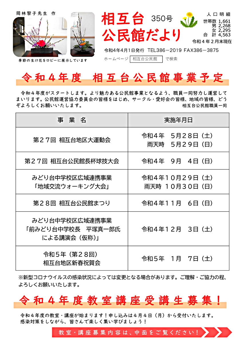 ★毎月1日・15日・末日にその月の公民館だよりを掲載しています。★内容に関するお問い合わせは各公民館までお願いします。