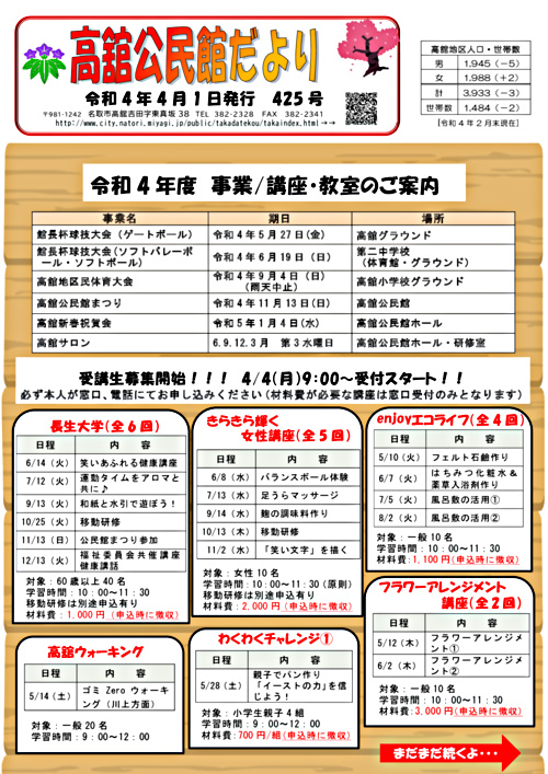 ★毎月1日・15日・末日にその月の公民館だよりを掲載しています。