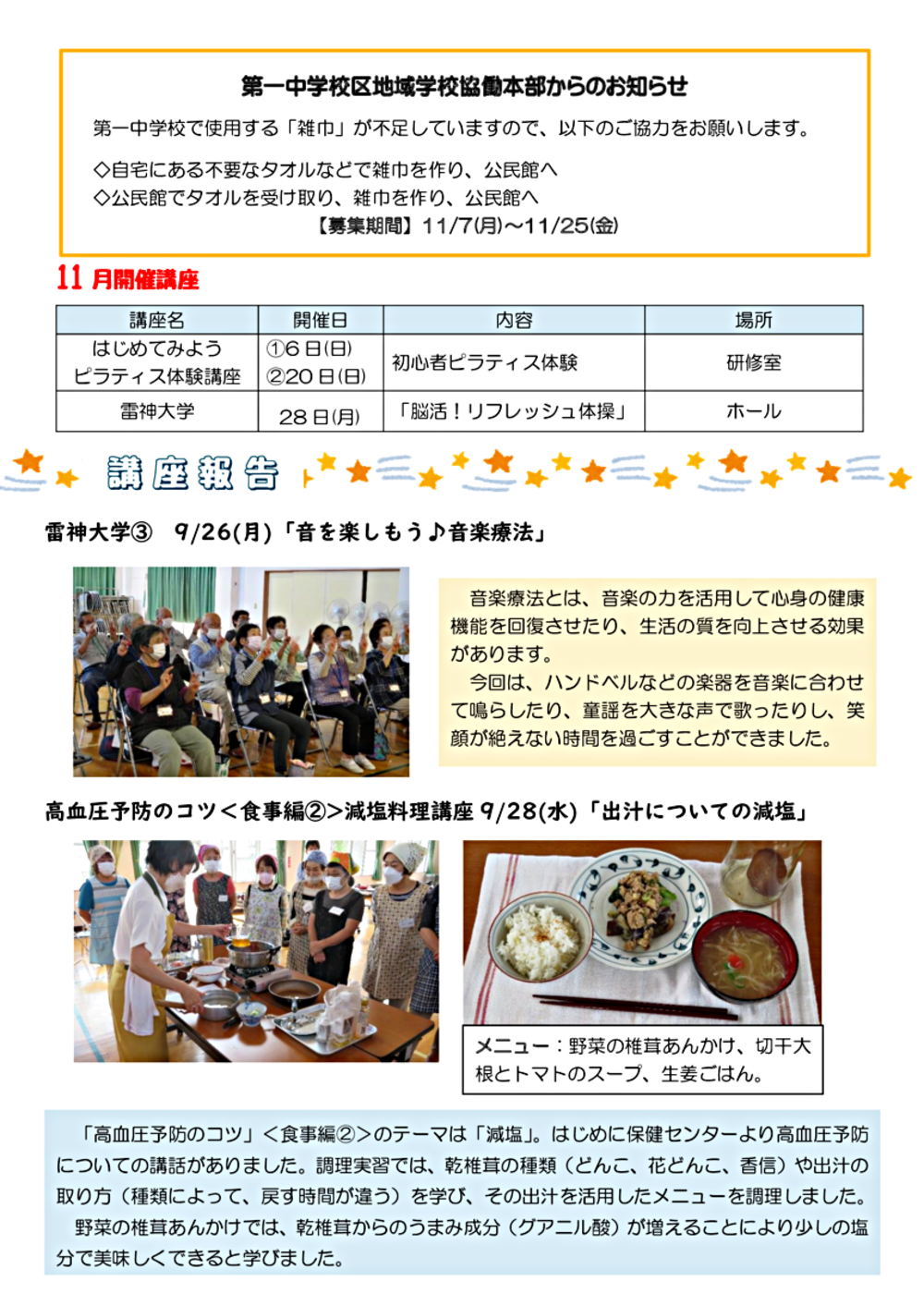 ★毎月1日・15日・末日にその月の公民館だよりを掲載しています。★内容に関するお問い合わせは各公民館までお願いします。