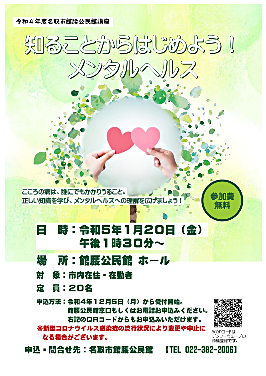 【対象・定員】名取市在住・在勤の方 20名