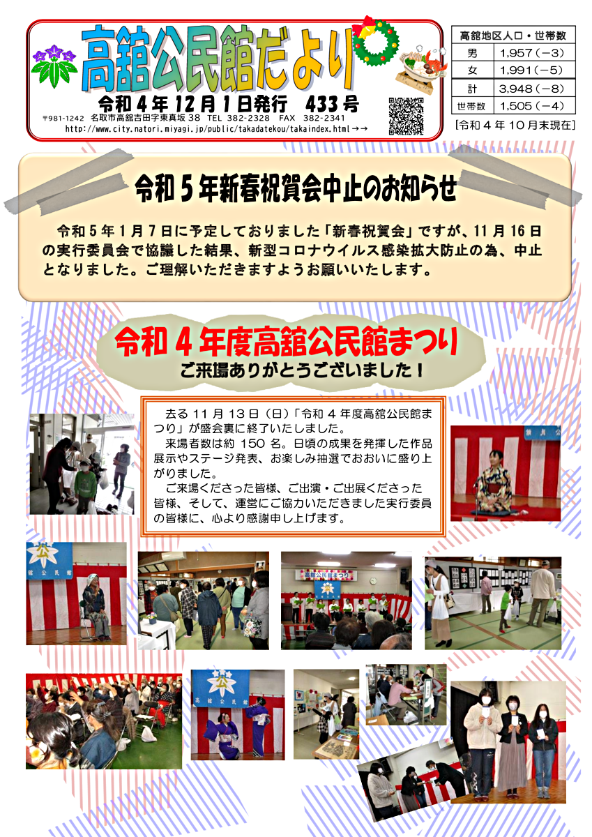 ★毎月1日・15日・末日にその月の公民館だよりを掲載しています。