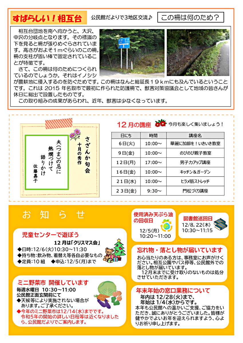 ★毎月1日・15日・末日にその月の公民館だよりを掲載しています。★内容に関するお問い合わせは各公民館までお願いします。