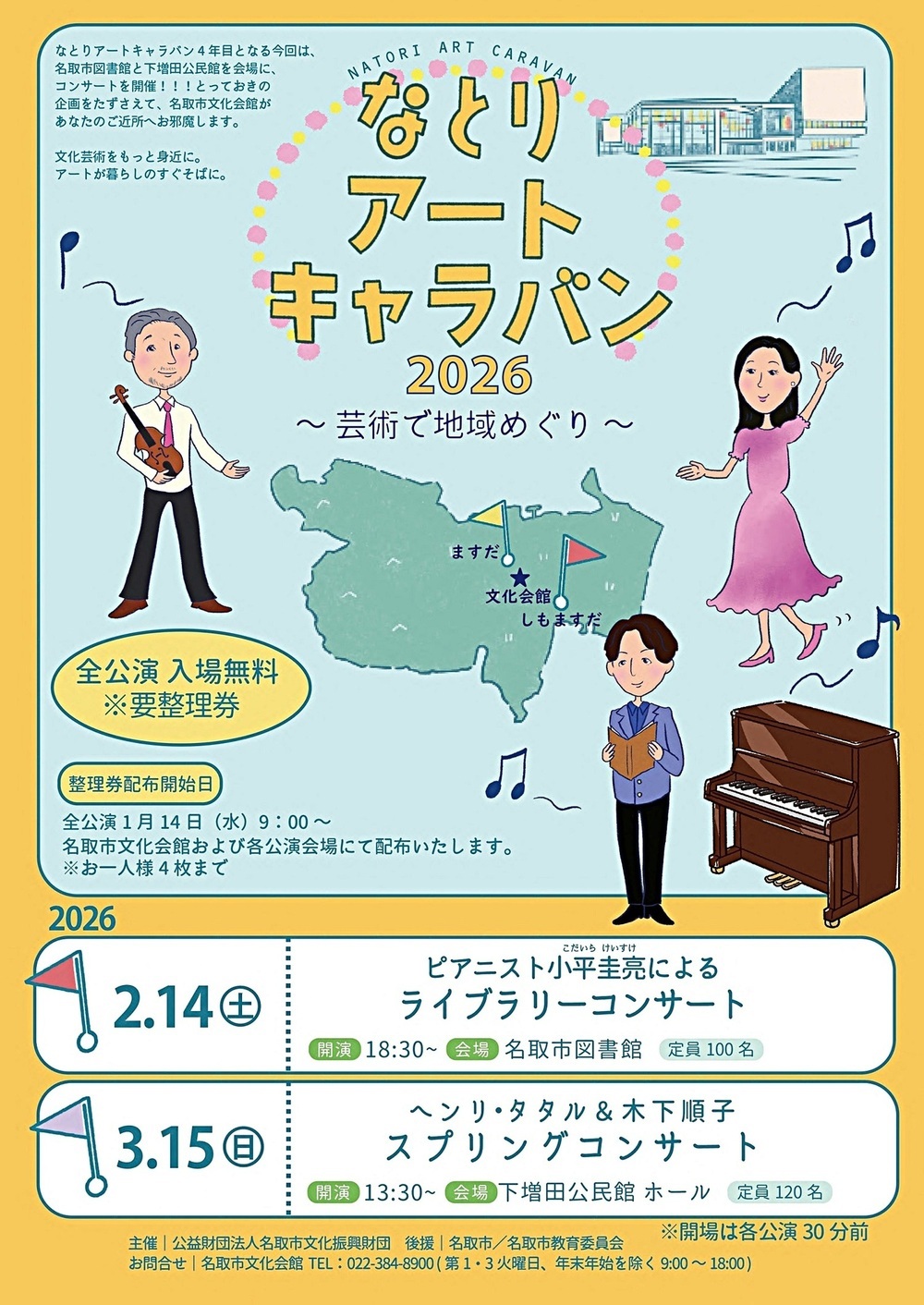 なとりアートキャラバン2026 ~芸術で地域めぐり~ ピアニスト小平圭亮による ライブラリーコンサート
