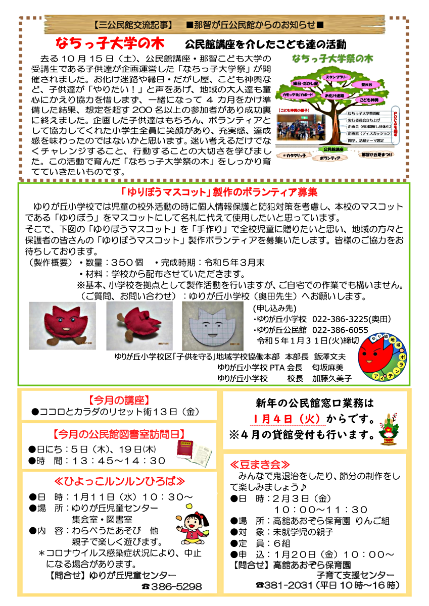 ★毎月1日・15日・末日にその月の公民館だよりを掲載しています。