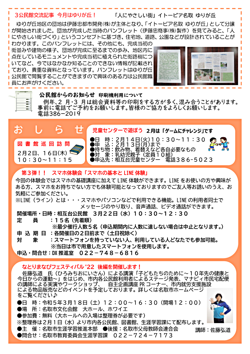 ★毎月1日・15日・末日にその月の公民館だよりを掲載しています。★内容に関するお問い合わせは各公民館までお願いします。