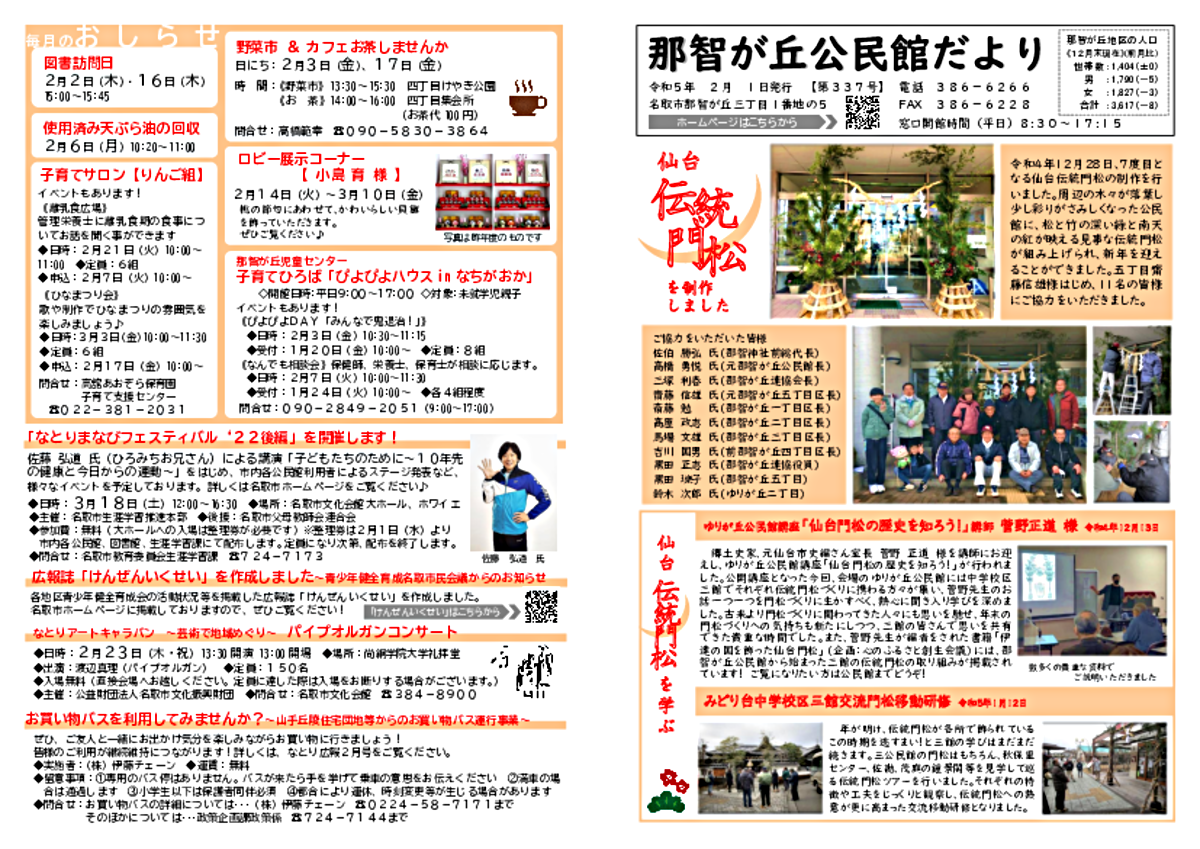 ★毎月1日・15日・末日にその月の公民館だよりを掲載しています。★内容に関するお問い合わせは各公民館までお願いします。
