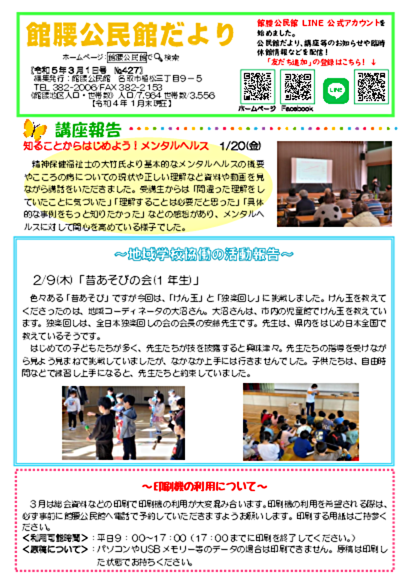 ★毎月1日・15日・末日にその月の公民館だよりを掲載しています。