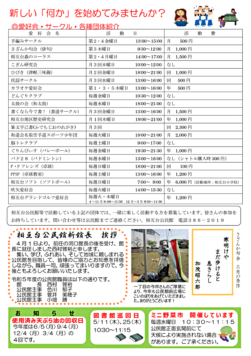 ★毎月1日・15日・末日にその月の公民館だよりを掲載しています。