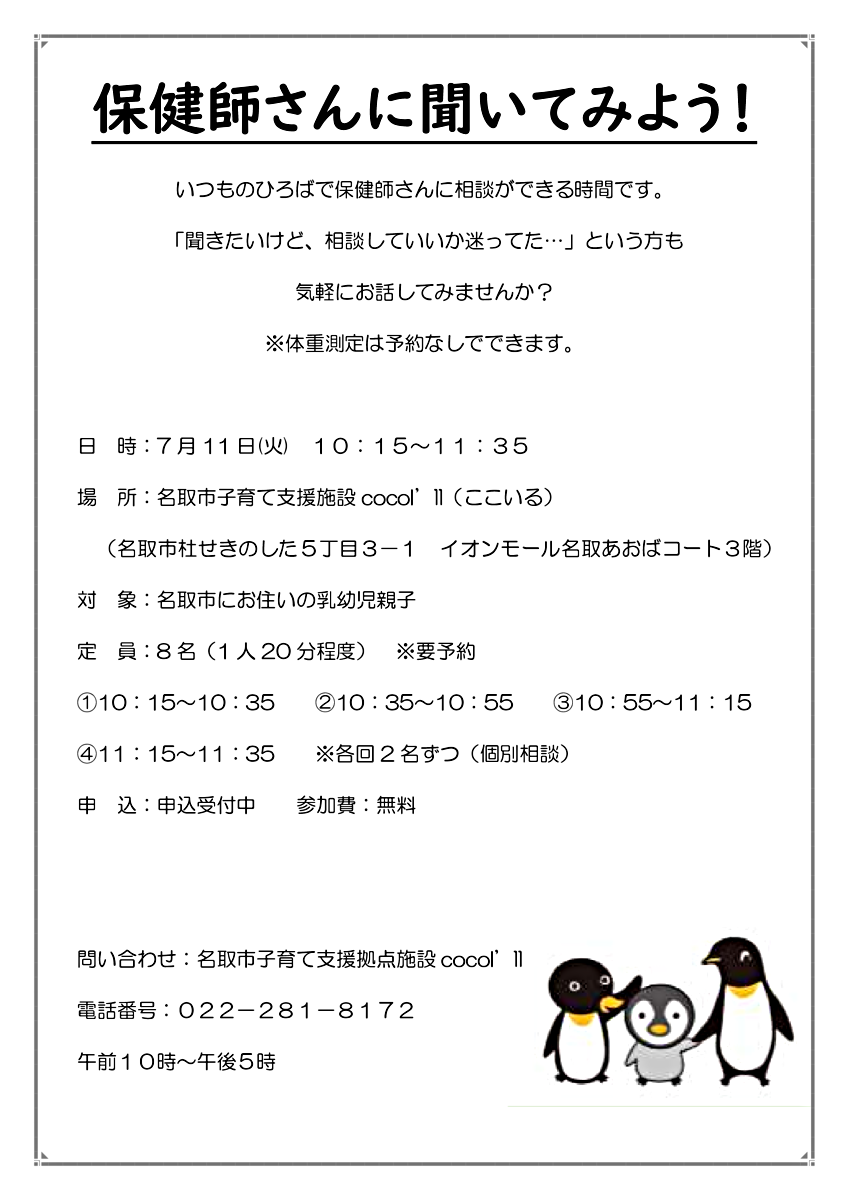 【対象・定員】名取市在住・在勤の方 8名