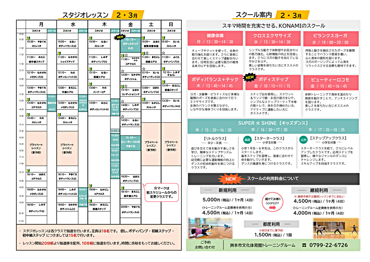 まだまだ寒さが厳しい今日この頃ですが、暖かい室内で体を動かして、春の行楽を巡るための体力づくりを始めてみませんか。
