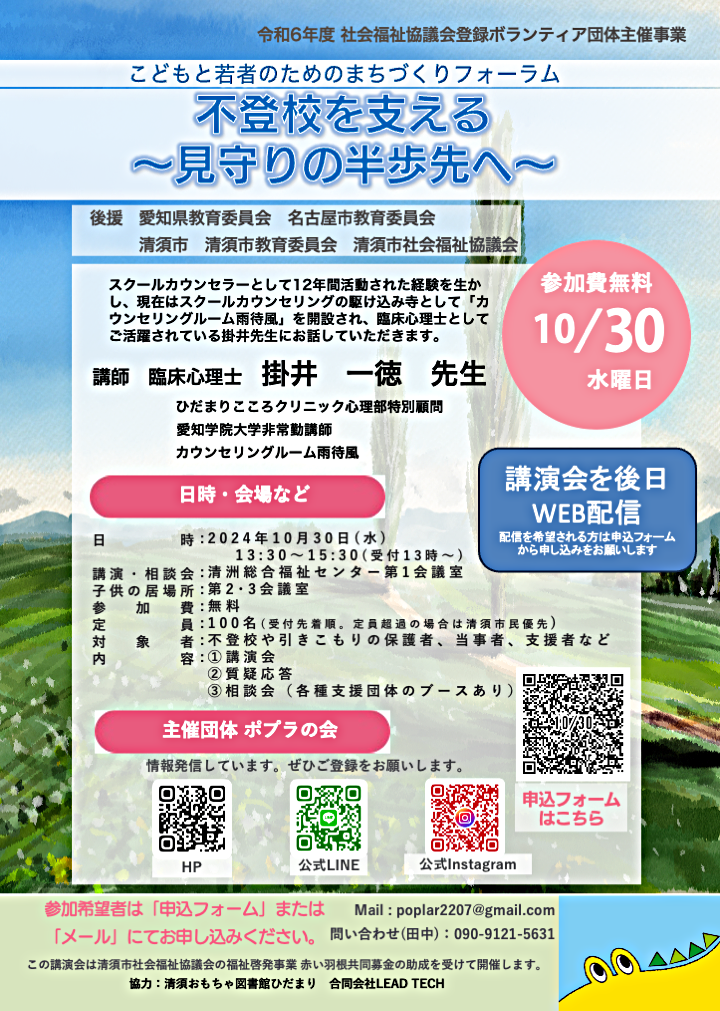 スクールカウンセラーとして12年間活動された経験を生かし、現在はスクールカウンセリングの駆け込み寺として「カウンセリングルーム雨待風」を開設され、臨床心理士としてご活躍されている掛井先生にお話していただきます。