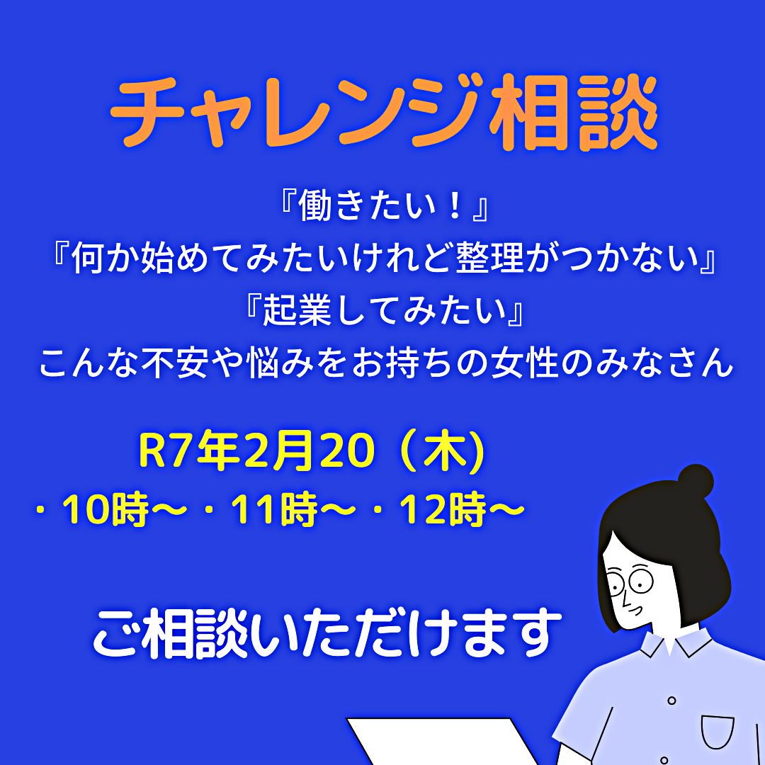 2月20日(木) 女性のためのチャレンジ相談 予約受付中