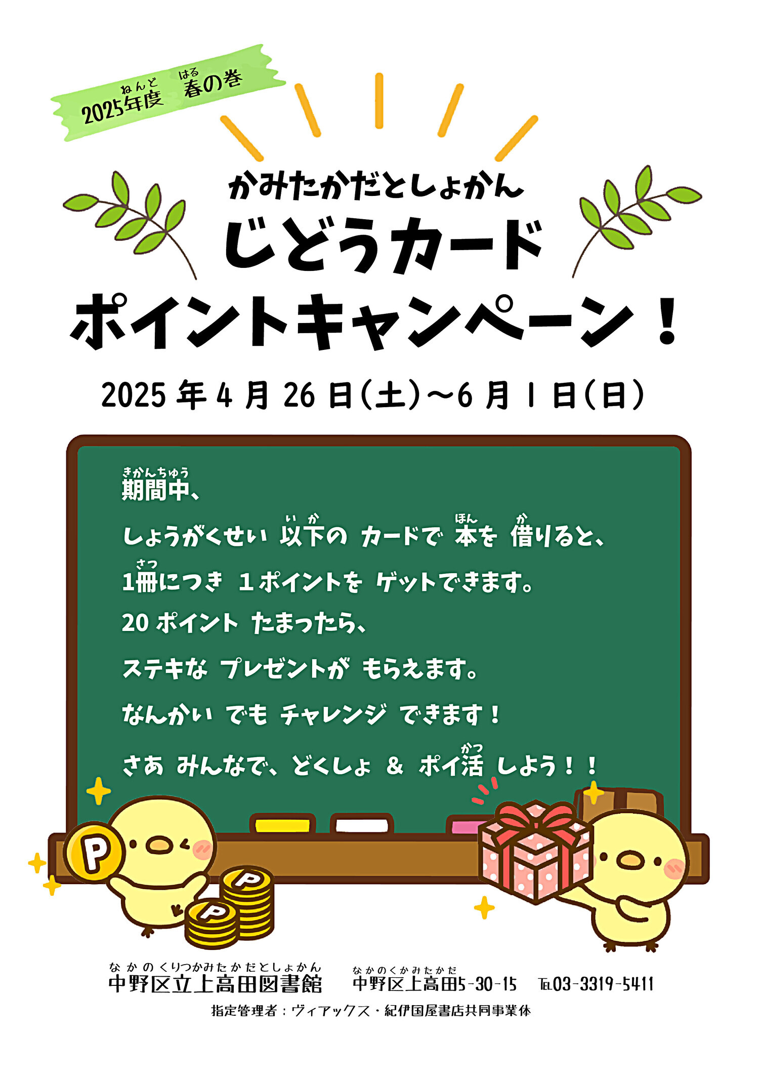期間中、小学生以下のカードで借りると、1冊につき1ポイントをゲットできます。