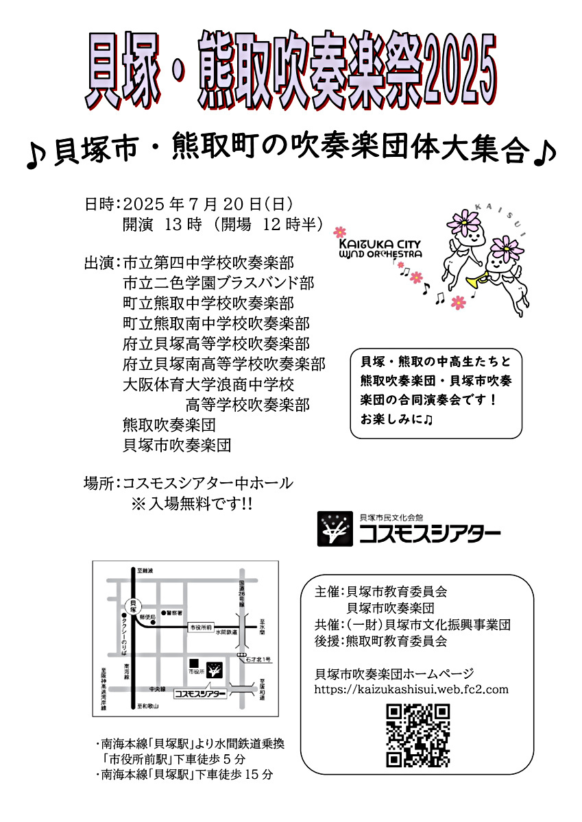 貝塚市、熊取町の吹奏楽団体が大集合します!