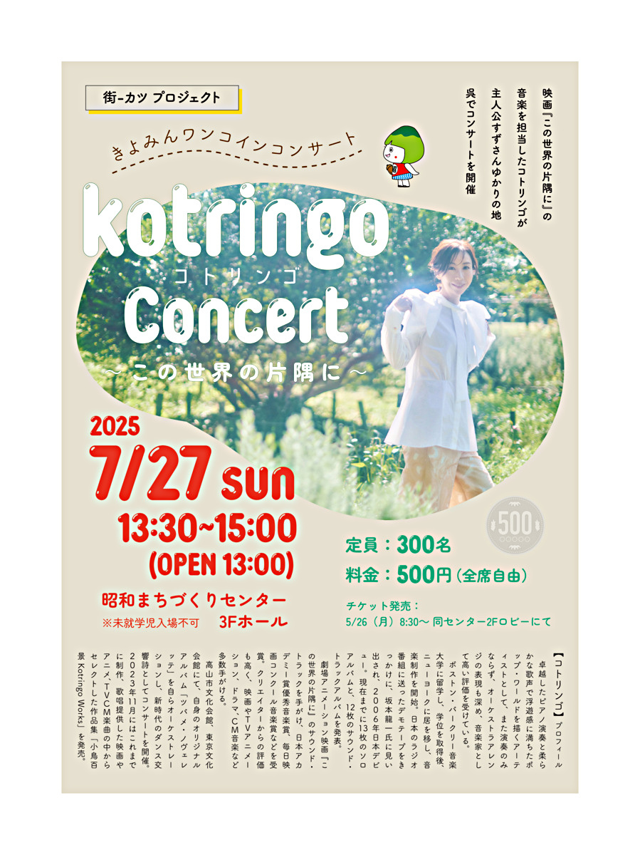 チケットは5/26(月)8:30〜昭和まちづくりセンター2Fにて販売します。1枚500円