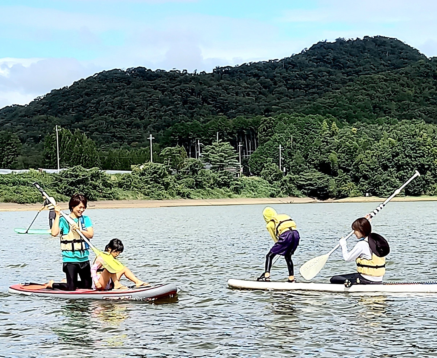 緑の山々に囲まれた穏やかな千丈寺湖でカヌー体験やSUP体験をしてみませんか。流れも無いのでファミリーも安心して楽しめます。団体様も受け入れ可能