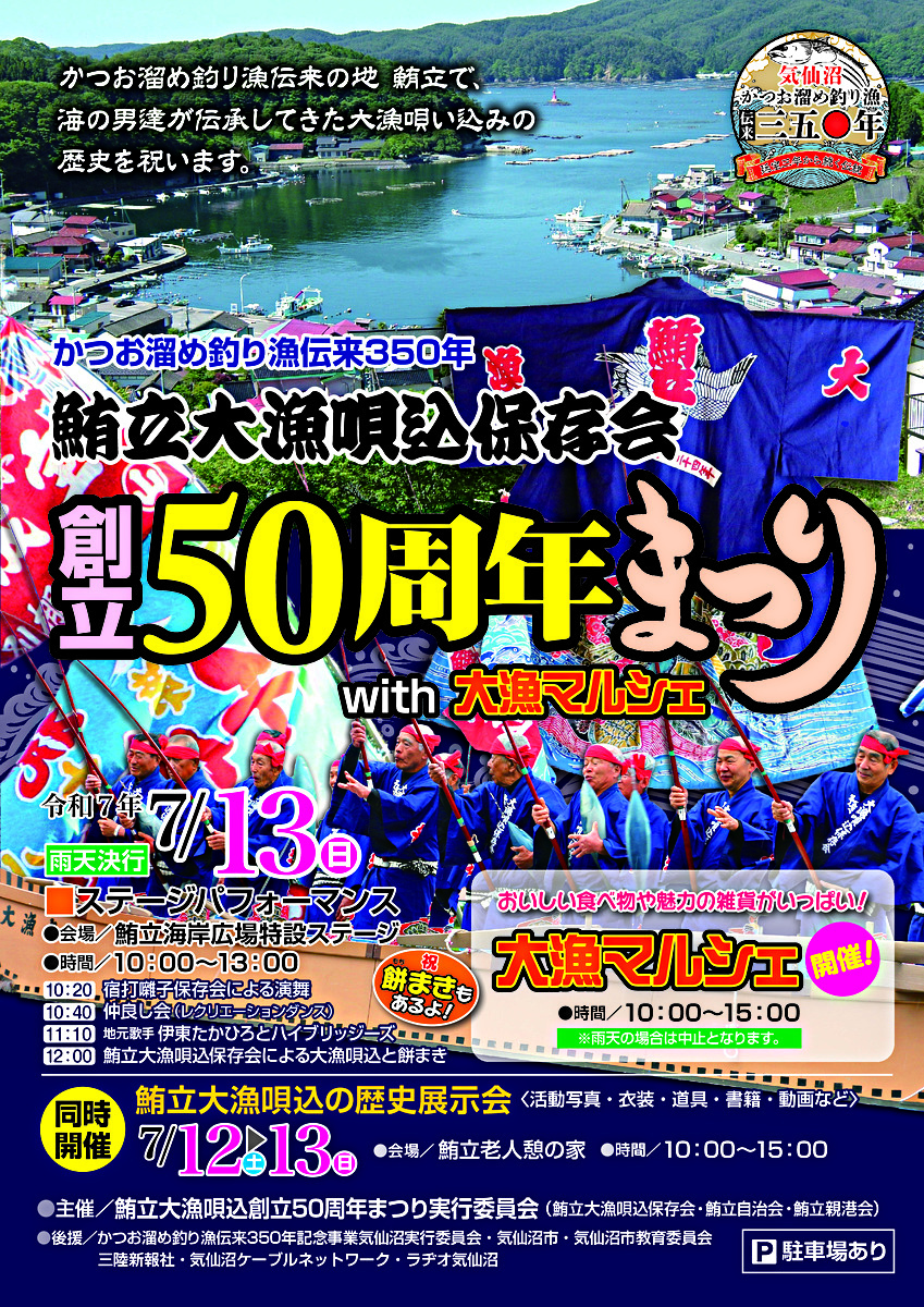 主催:鮪立大漁唄込創立50周年まつり実行委員会
