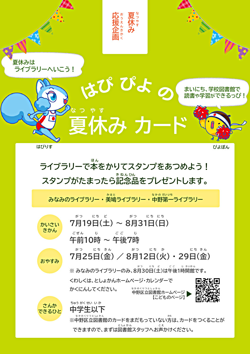 ライブラリーは7月25日(金曜日)、8月12日(火曜日)、29日(金曜日)がお休みです。