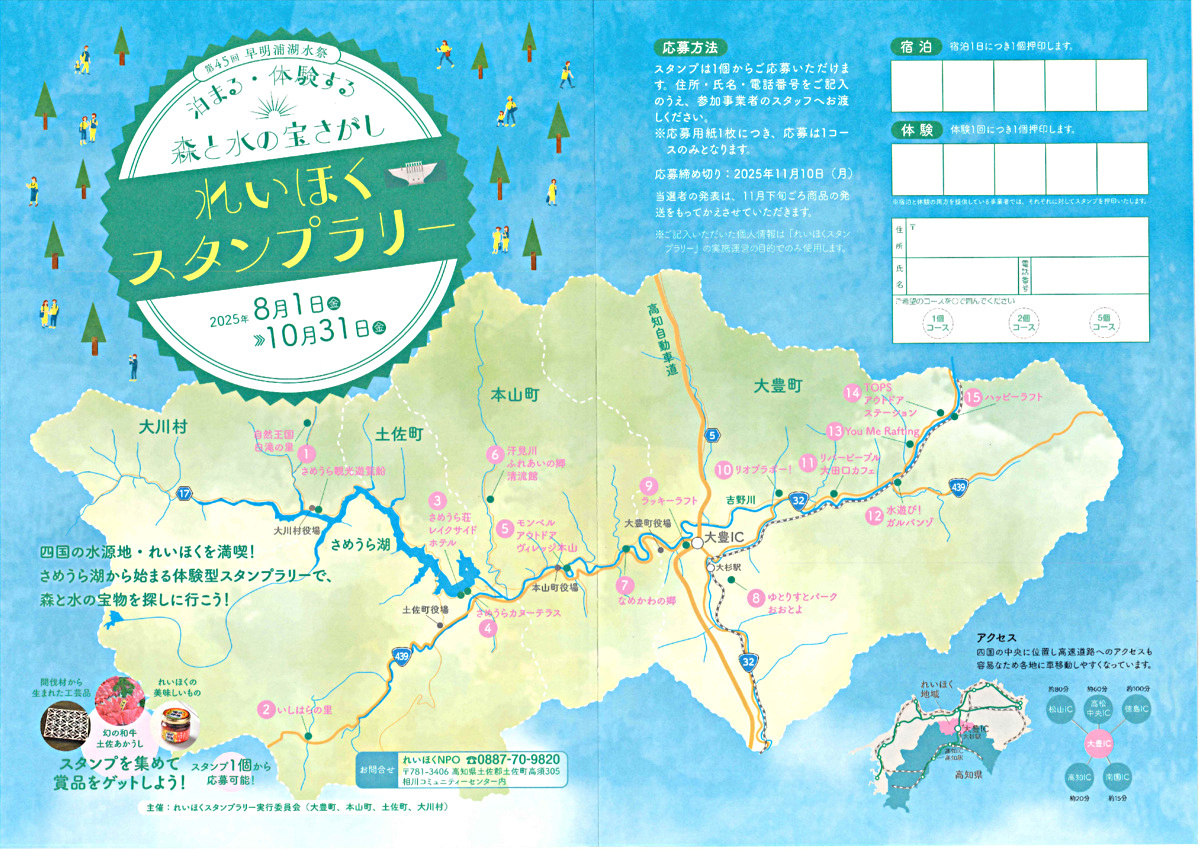 嶺北地域での宿泊や体験でスタンプを集めて応募すると抽選で土佐あかうしや地場産品が当たります