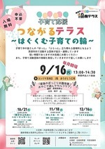 9月の「つながるテラス~はぐくむ子育ての輪~」は、「産後のぽっこりお腹改善♪おやこで遊んでセルフケア」をテーマに開催します。