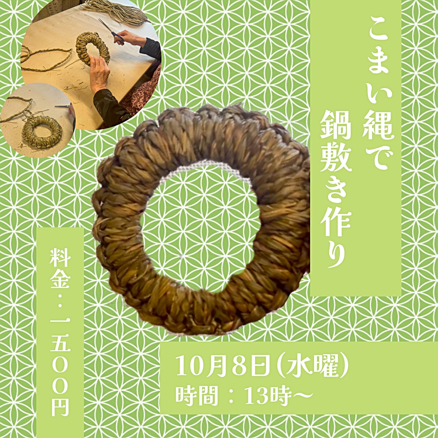 8日水曜日の午後に開催するのは『こまい縄で鍋敷き作り』です!