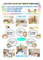 0歳から就学前までのお子さんと保護者の居場所として親子で一緒に遊ぶことができます。また、保護者同士が交流したり、子育てについて学んだり、育児相談も出来る広場です。