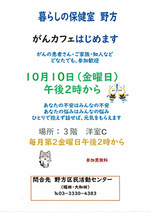 10月の暮らしの保健室野方は第2金曜日と第4火曜日(どちらも午後2時~4時まで)に実施します。