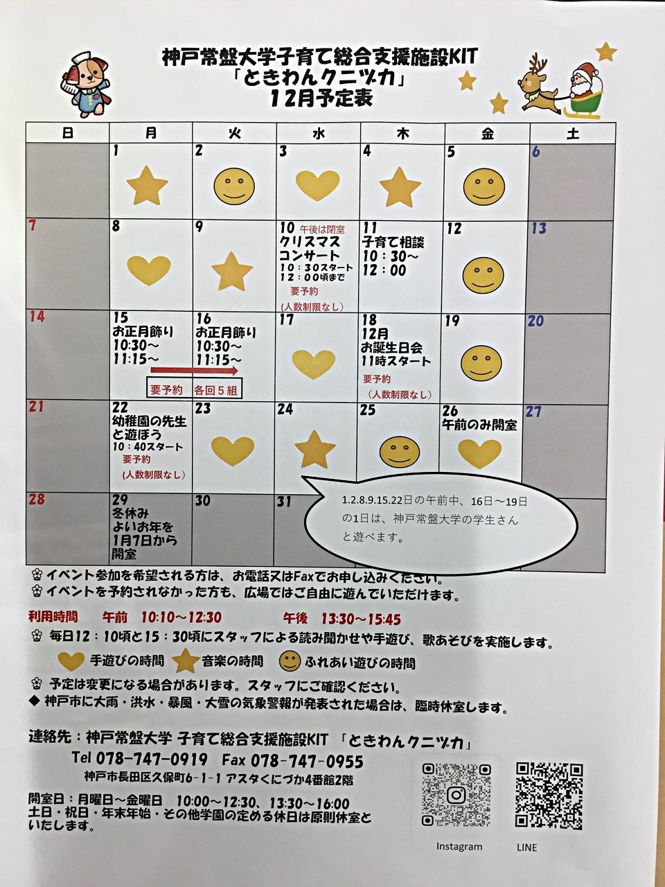こんにちは☺︎ときわんクニヅカ 12月のカレンダーです🎄