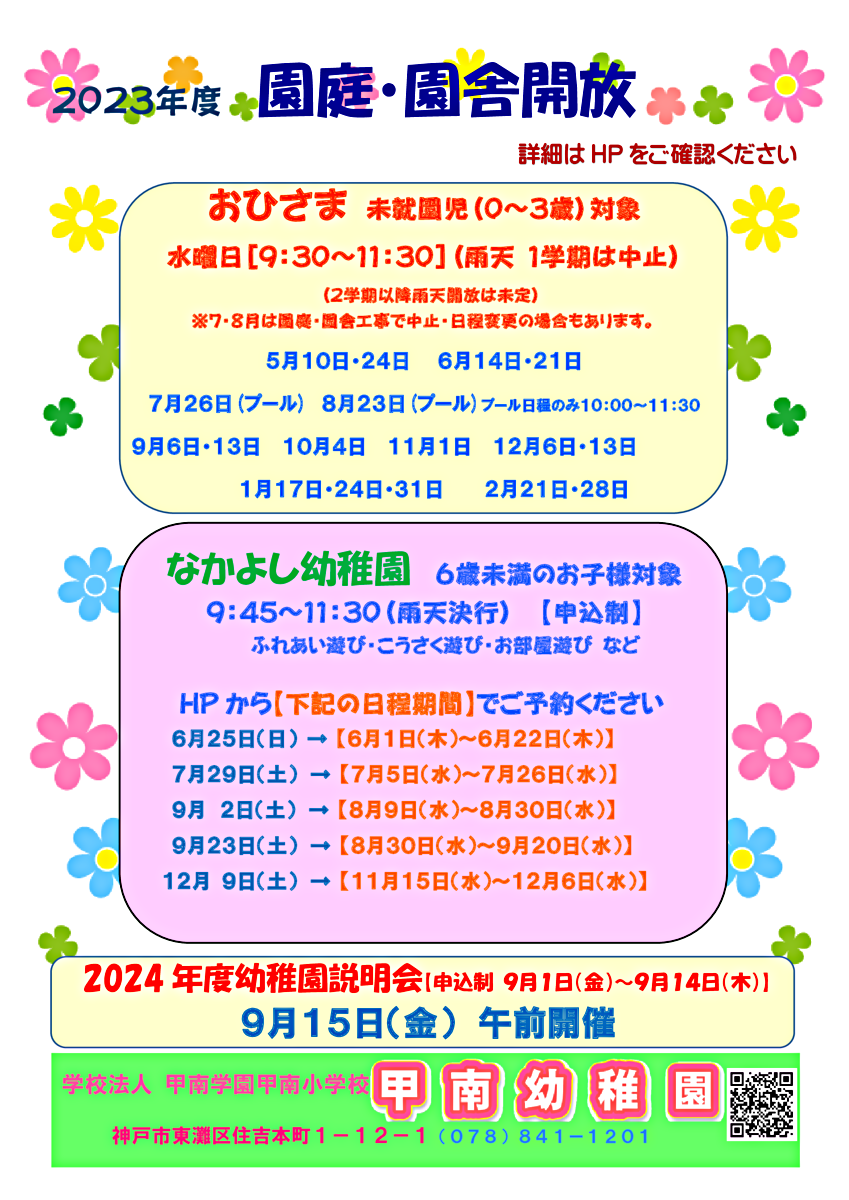 なかよし幼稚園はHPから申込みください